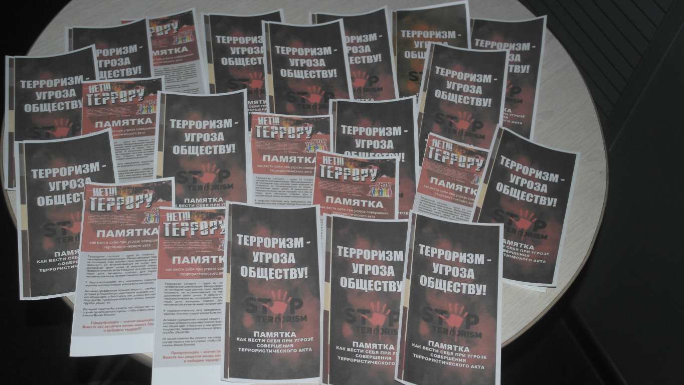 Всем участникам мероприятия были розданы тематические памятки, содержащие рекомендации, наглядно разъясняющие, как вести себя при угрозе совершения террористического акта.