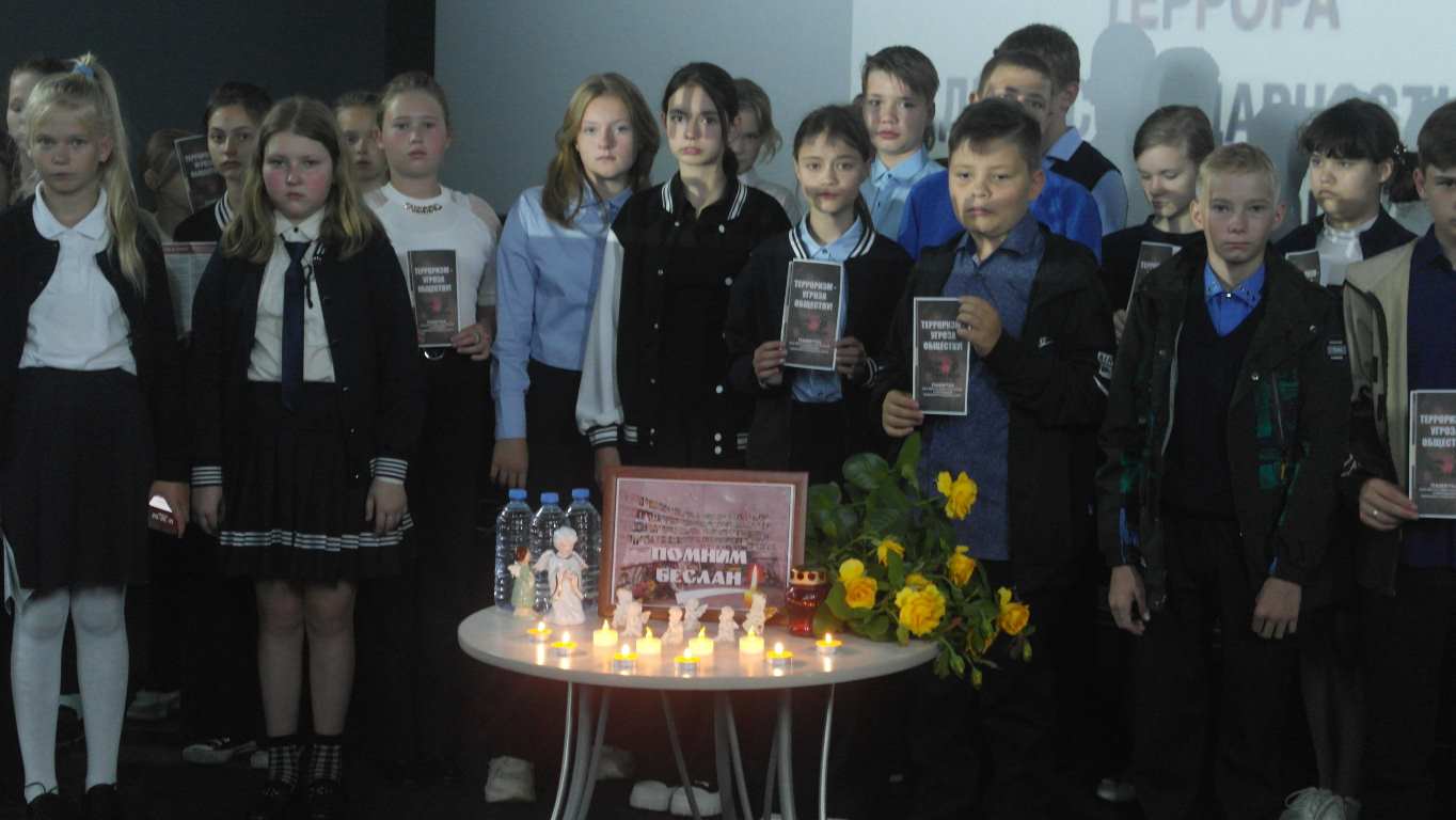 Завершилось мероприятие минутой молчания. Школьники почтили память погибших от рук террористов, зажгли свечи памяти, как символ сопричастности с общим горем.