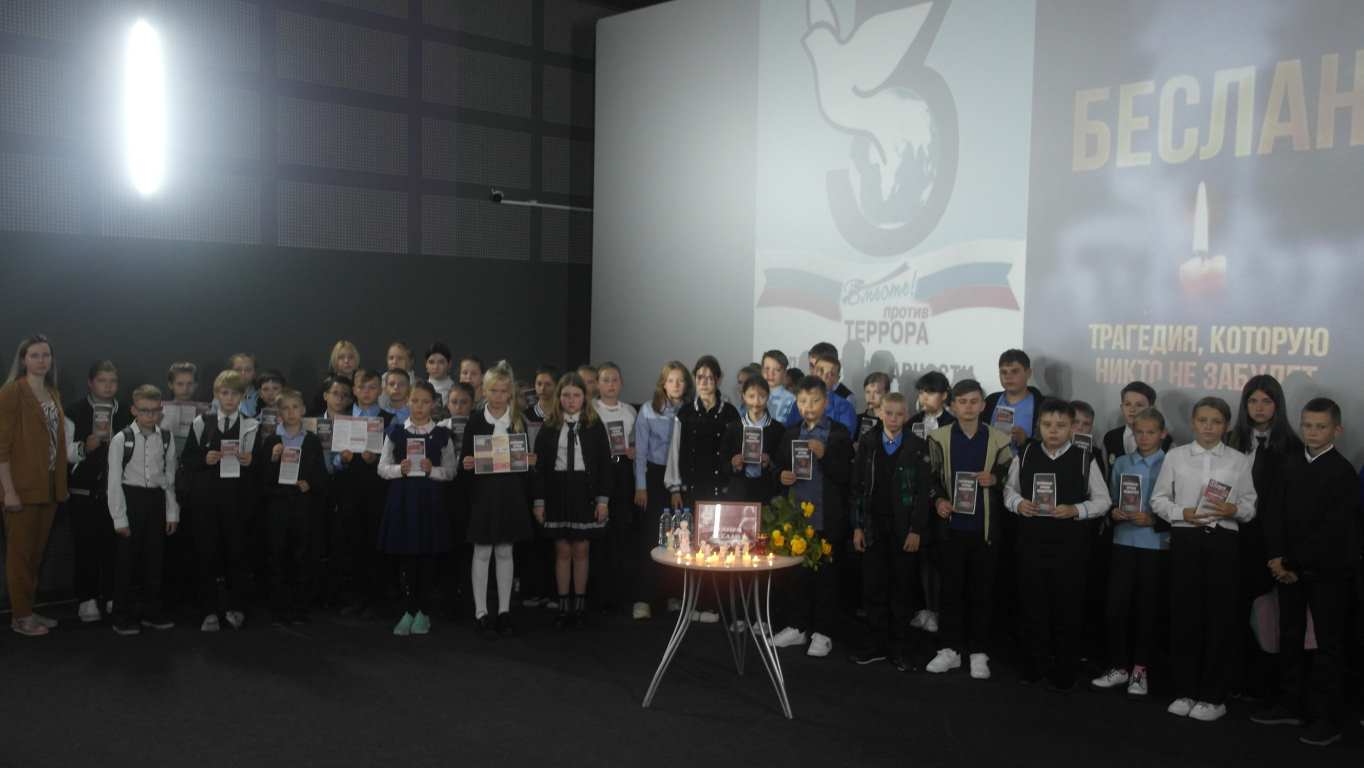 В рамках Дня солидарности в борьбе с терроризмом в МБУК "Фатежский КДЦ "Комета" для учащихся 5-6 классов МКОУ " Фатежская СОШ N1" состоялась тематическая беседа - информационный видеоурок «Мы обязаны знать и помнить». Ведущая мероприятия рассказала о страшной трагедии Беслана, о том, что такое терроризм, как ему противостоять, а также об основных правилах поведения в условиях угрозы терактов. Просмотр видеоролика «Трагедия Беслана» вернул присутствующих к страшным событиям девятнадцатилетней давности.